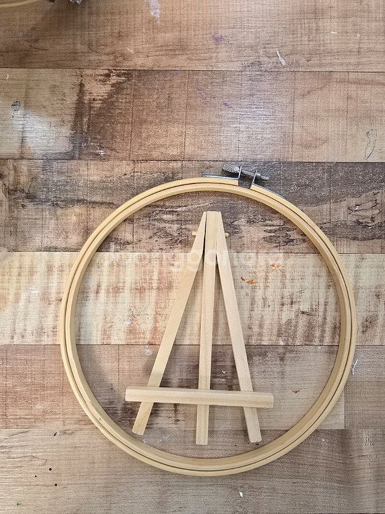 지름 20cm자수용 원형 자수틀과 받침대가 포함된 세트예요. 나무 소재로 되어있고 상태 양호합니다. 자수 작업하시는 분께 유용할 것 같아요!