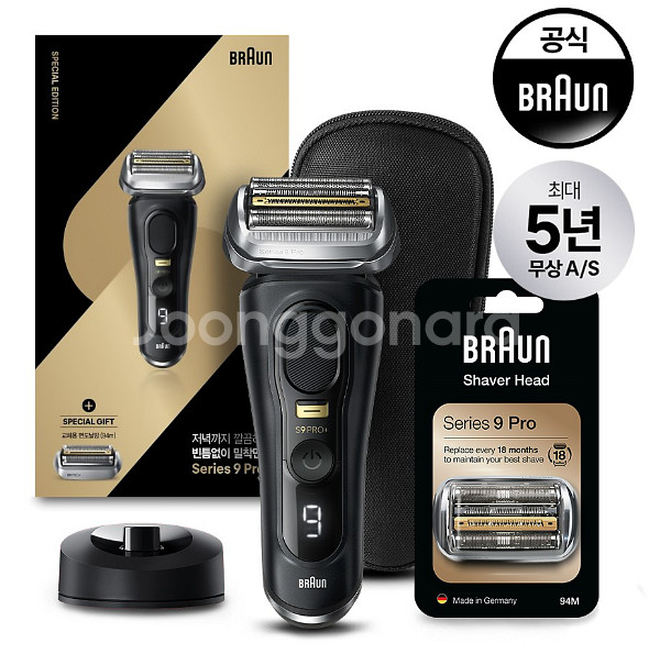 브라운 전기면도기9 PRO+ (충전스탠드 + 케이스 + 94M교체용 면도날망) 미개봉 새상품입니다.
