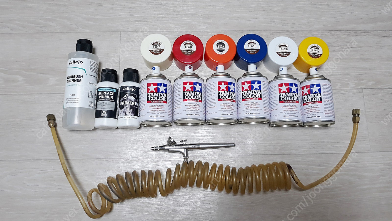 안녕하세요! 택배비 절약하느라 여비로 구매해 놓고서는 사용안하고 있는 제품들 일괄판매합니다. [미사용] 바예호 아크릴 서페이서 프라이머 73600 White 60ml 최저가판매가격 10,200원→→→5,000원(2개)=판매가격10,000원 [미사용] 바예호 아크릴 에어브러시 신너 71161 200ml 최저가판매가격17,900원→→→판매가격10,000원 [중고사용제품] 타미야 캔스프레이100ml 1.TS-7 레이싱화이트 2.TS-8 이탈리안레드 3.TS-12 오렌지 4.TS-15 블루 5.TS-26 퓨어화이트 6.TS-47 크롬엘로우 최저가판매가격 10,500원→→→5,000원(6개) 판매가격 30,000원 원하는 색상 찾으려 비슷한 계열의 컬러 구매해 놓고 미묘하게 원하는 색상이 아닌 관계로 판매합니다. 사용량은 백색아크릴에 테스트 도색해서 90%이상 남아있습니다. [중고사용제품]리치펜 Rich Pen 에어브러쉬 112B 최저가판매가격123,000원→→판매가격 30,000원 사용감 있어도 도색작업하시는데 이상없습니다. 일괄판매 합계가격 80,000원 (택배비 무료) 수수료 내야되는 중나앱 통한 구매 비추천 구매의사 있으시고 궁금한 내용 있으시면 "문자"로 연락주세요~^^ OIO사칠육칠11칠삼 감사합니다.
