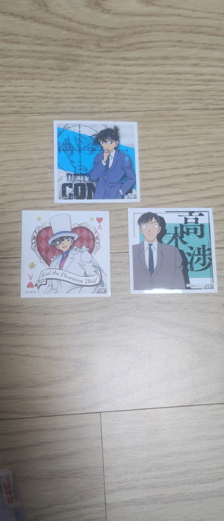 명탐정코난 신형사,괴도키드(고희도),남도일 스티커입니다. 상태 양호하고 컬렉션용으로도 좋을 것 같아요! 개별가격은 500원이고 일관가격은 1500원입니다.