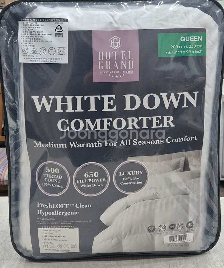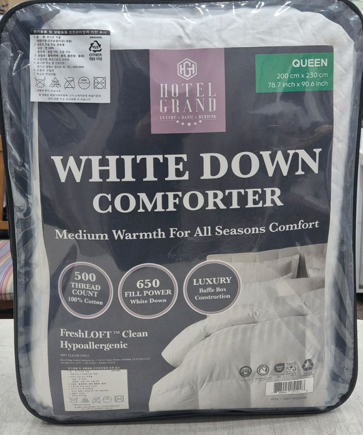 진열상품입니다 솜털75%, 깃털25% 겉감 면100% 얼룩은 없이 깨끗하지만 세탁하셔야 합니다 무료배송 입니다