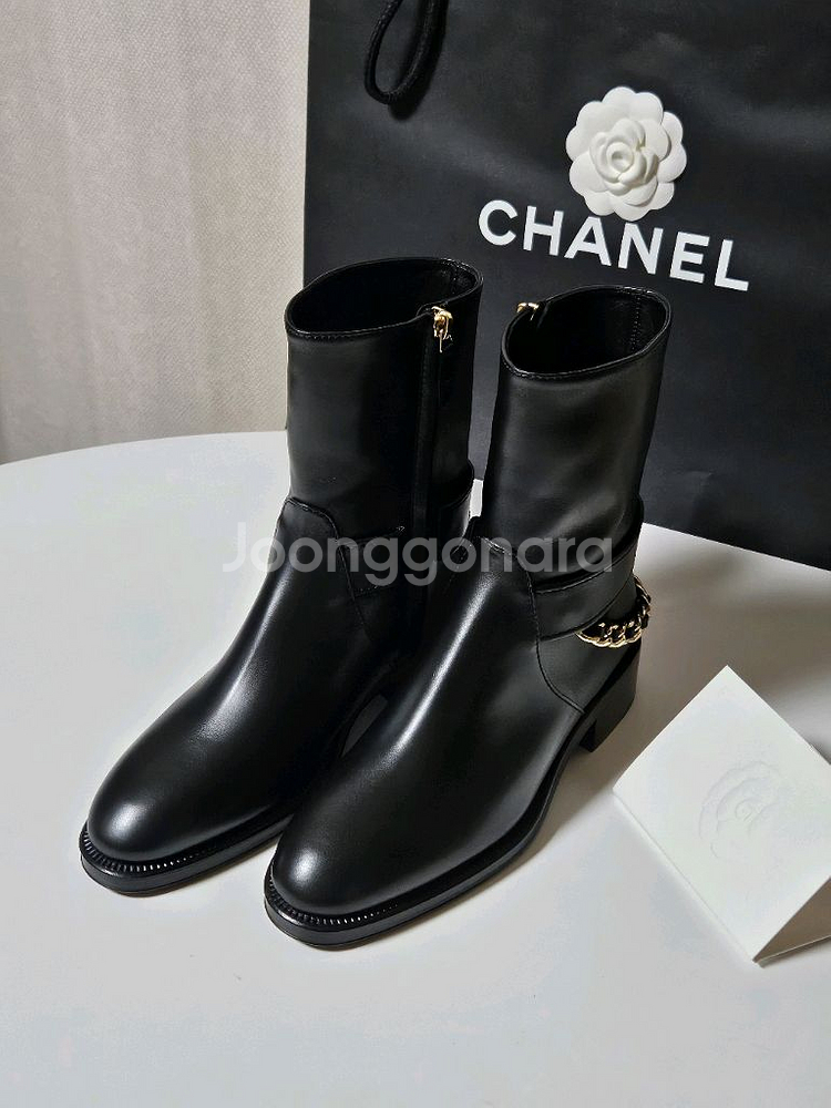 샤넬 체인 부츠 G39170 모델 입니다. 사이즈6 (한국230)입니다. 인천공항 2터미널 샤넬 면세점 매장에서 구입했었어요~ 현재 백화점에서는 350만원대에 판매되고 매년 솔드아웃 되는 모델입니다. 구성품은 영수증, 보증서, 쇼핑백, 부츠안 지탱하는 종이 있어요~ 박스는 여행갈때 산거라 부피 때문에 버리고 없어요. 착용 횟수는 집안 신발장에서 신어본게 다입니다. 신고 밖에 나간적이 없어서 거의 새제품이라고 생각하시면 되요. 신발 발등부분 주름 이런거 없습니다. 직거래 범계역,사당역 근처에서 가능해요. 네고X, 중고특성상 환불 불가합니다~