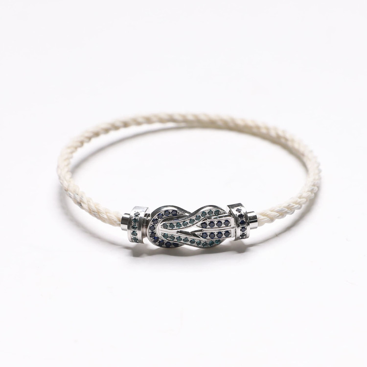 모델명: 프레드 FRED 샹스 인피니 브레이슬릿 18K 화이트 골드 및 블루사파이어 및 토파즈 풀파베 미디엄 모델 버클디테일: 18K 화이트 골드 및 블루사파이어 및 토파즈 버클 길이: 21mm 버클 폭: 8mm 미디엄 모델 케이블 디테일: 14호 / 화이트 텍스타일 / 스테인리스 스틸 엔드 캡 구성품: 버클, 브레이슬릿, 프레드 케이스, 프레드 종이 북렛 폴리싱 유무: 폴리싱 안함 현재상태(컨디션): 실기스 등의 사용감 있음. 단, 눌림이나 찍힘은 없음. 일본 최초 구매의 제품으로 현재 프레드 공식 홈페이지에서 단종된 희귀매물 입니다. 사용중 AS는 전국 프레드 매장에서 서비스 가능한 "정품" 입니다. 제품 및 구매문의는 채팅 혹은 공일공 사사팔사 팔구일공 번호로 연락주세요...!
