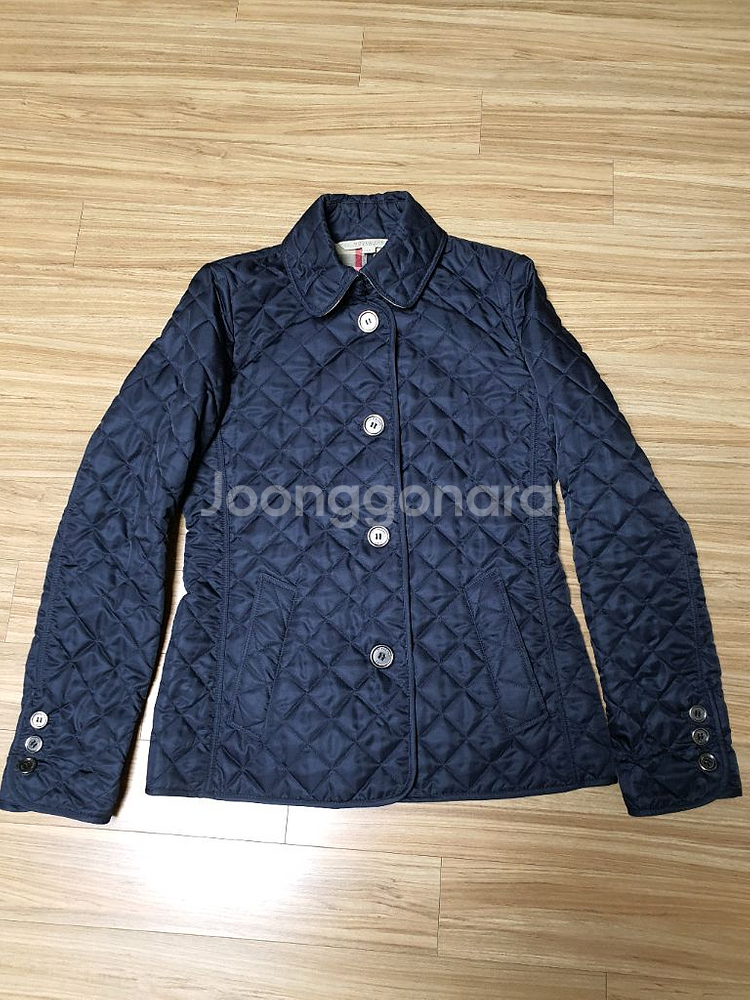 정품 버버리 퀼팅 재킷이에요. 두어 번 입고 살이 붙어서 울 딸이 제일 예뻐보이는 색상이라 딸 주려고 명품 세탁까지 했는데 워낙 빼빼해서 크니 안 입으려 해서 아쉽지만 내놓아요ㅜ 사진 보시면 목도 아예 입은 흔적조차 없습니다. 다크 네이비 컬러에 시그니처 체크 안감과 스트라이프 포인트가 있어서 고급스러워요. 상태 새것같고 따뜻하니 올 겨울 예쁘게 입으세요! 가슴단면 46