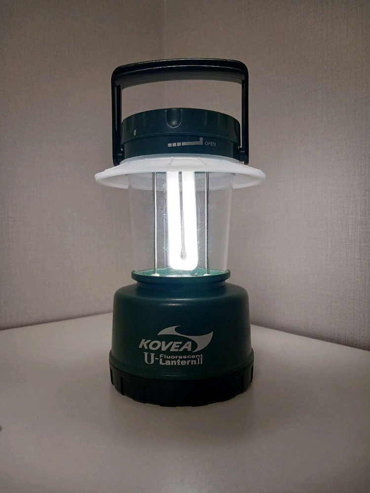 코베아 플로레센트 랜턴이에요. 배터리 누액 사용감은 있지만 작동 잘 되고, 배터리도 포함되어 있어서 바로 사용 가능해요. 캠핑이나 야외활동용으로 좋습니다.