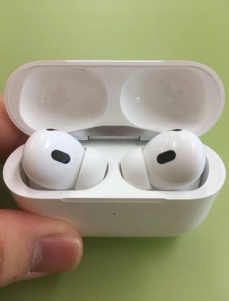 애플 에어팟 프로 2세대 화이트 색상입니다. 케이스와 이어폰 모두 깨끗한 상태로 잘 관리되어 있어요. 노이즈 캔슬링 기능 지원하는 최신 에어팟입니다.