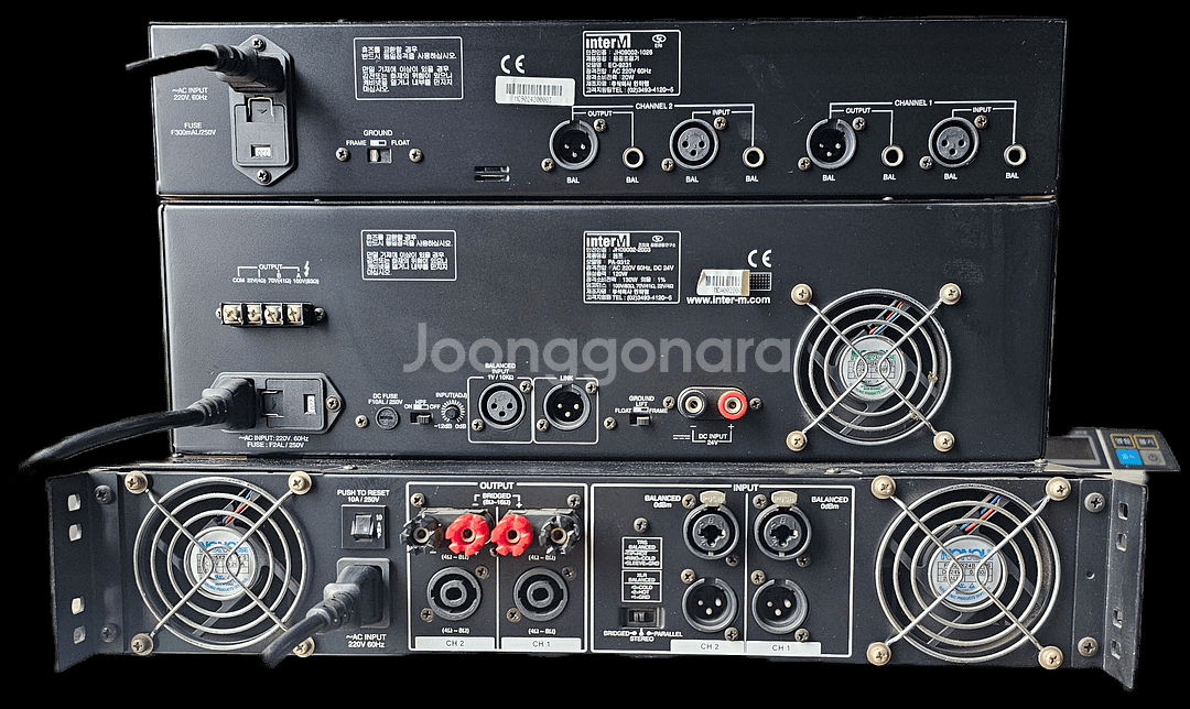 구성품 # inter-M EQ-9231 그래픽 이퀄라이저 31밴드 그래픽EQ 좌/우 스테레오 음질 튜닝 및 피드백 제어 # Inter-M PA-9312 파워 앰프 안정적인 출력 보호 회로 정상 공공시설 사용모델 # Inter-M M1000 파워 앰프 고출력 스테레오 앰프 채널별 볼륨 조절 CLIP / PROT 표시정상 # 모두 정상작동 #A급 중고제품 #실사용 문제없음 # 전화번호 010 9977 4709