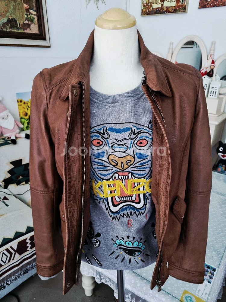 켄우드 브랜드의 고급스러운 브라운 가죽 자켓이에요. 새상품으로 상태가 매우 좋고, 클래식한 디자인으로 오래 입기 좋은 아이템입니다.