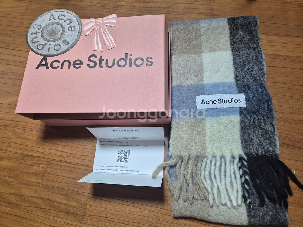 아크네 스튜디오 모헤어 체크 스카프 블루/베이지/블랙 운포 340,000원 상태 좋음.