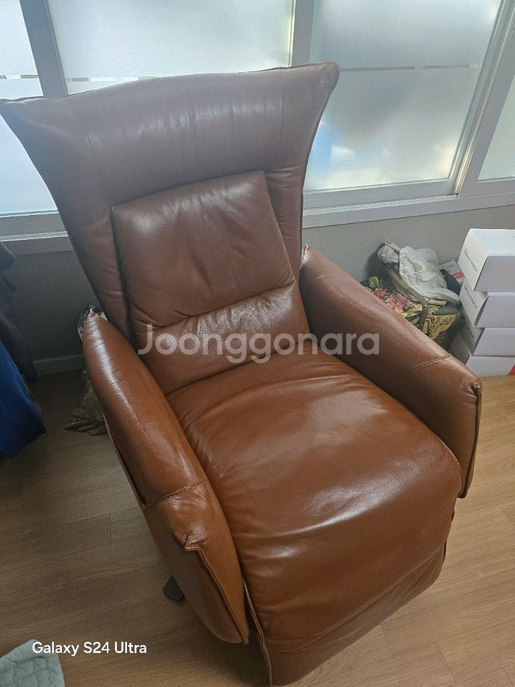 고급 가죽 소재의 리클라이너 의자예요. 브라운 컬러로 고급스럽고 편안한 착석감을 제공합니다. 사용감은 있지만 전체적으로 깔끔한 상태입니다. 당시 구매했을때 300만원정도 주고 구매한 의자입니다. 상태 양호하며 버튼 전부 잘 작동됩니다. 무게가 무겁고 부피가 있어서 용달이나 직접 가져가셔야합니다.