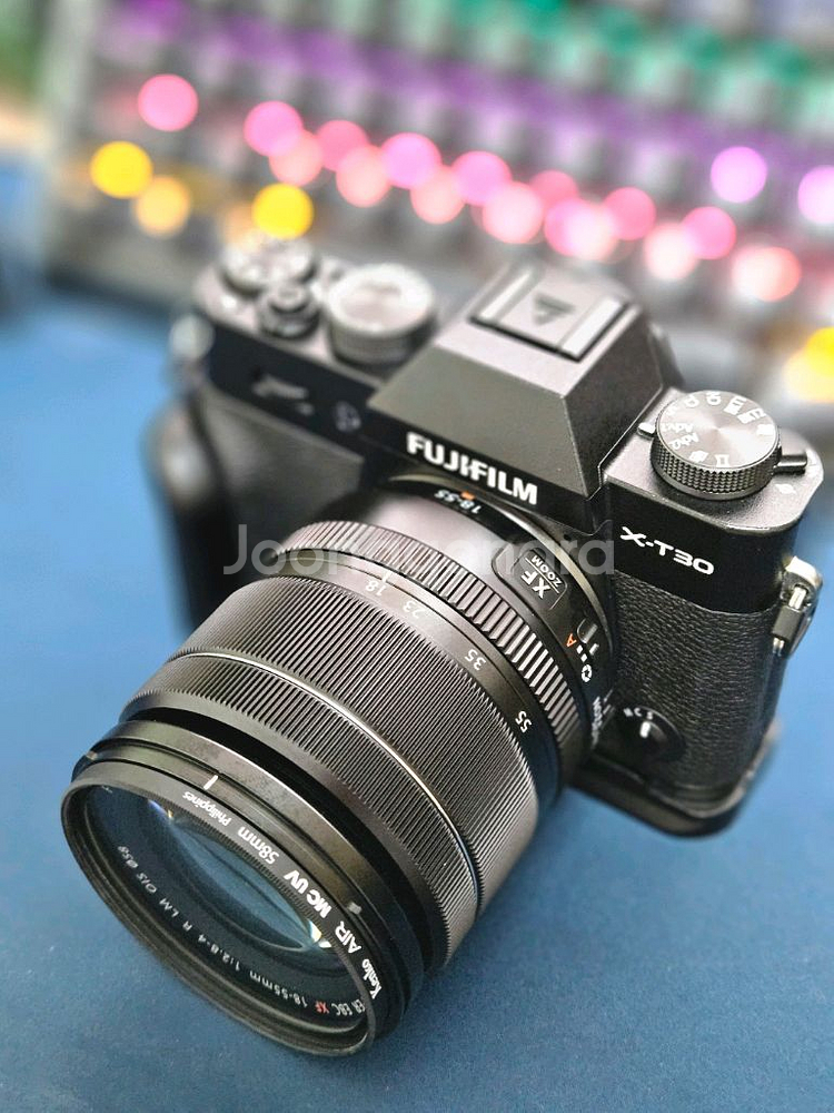 후지필름 X-T30ii + 18-55mm 렌즈 킷 판매합니다 구성은 정품 충전기/ 정품배터리2개/ 후드/렌즈필터/jjc 그립/순정 넥스트랩/ 렌즈캡/후지필름 렌즈보호 천/박스O 렌즈캡은 찍힘 + 기스 후드는 생활기스 렌즈바디 자체는 깨끗합니다! LCD모니터에 필름 붙여서 필름에만 기스있습니다. 제거하면 깨끗! 바디는 셔터버튼에만 칠 까짐 있습니다 어디 부딪혀서 생긴건 아니고 자주 손을 대다보니 자연스레 까진부분 입니다. 뷰파인더는 지저분해 보이는데 기스는 없습니다. 판매전 크리닝해드립니다 물건에 기스나면 발작하는 사람이라 조심조심썼고 6개월정도 쓰다가 T5로 기변하여 실 사용은 크게 없습니다. 집에서 셔터 소리 듣는용으로 사용했습니다. 보증기간은 25년 8월로 끝났습니다