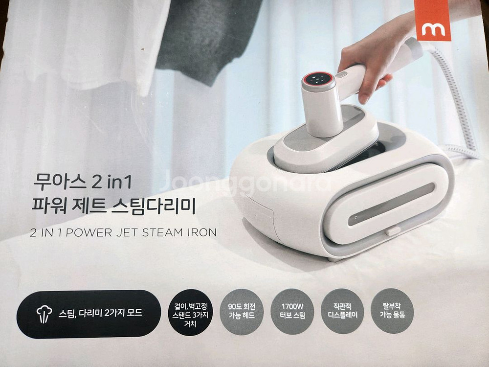 무아스 2in1 파워 제트 스팀다리미 MIS1입니다. 몇 번 사용하지않아 상태 좋습니다. 박스X - 스팀, 다리미 2가지 모드로 사용 가능해요 - 1700W 터보 스팀으로 강력한 스팀을 제공합니다 - 탈부착 가능한 물통으로 물 보충이 용이합니다