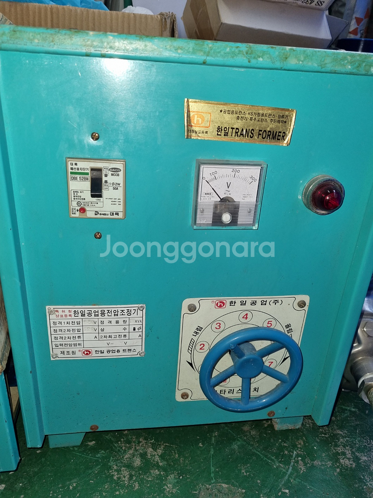 한일 트랜스포머 15kVA 용량으로 전기 공사나 산업용으로 사용하기 좋은 제품입니다. 외관 상태 양호하고 정상 작동하는 중고 장비예요.