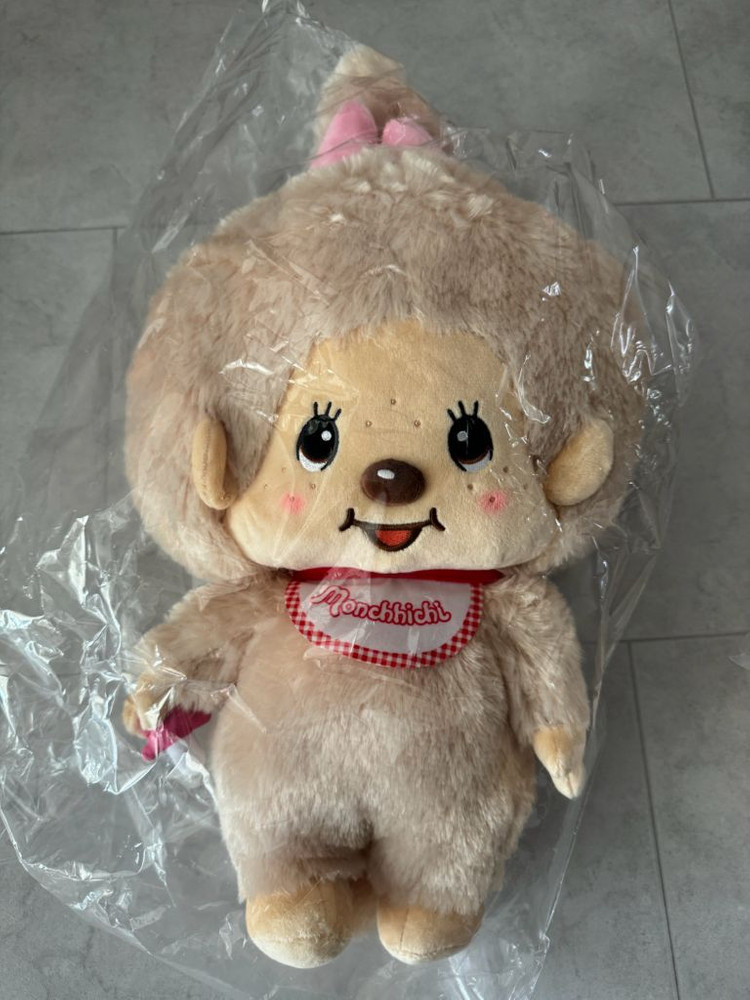 일본에서 구매한 대형 몬치치인형이에요 여자아이로 머리 묶고 있고 실물이 정말 귀엽네요 가로 26 세로 45 폭 17cm 정도입니다 비닐 미개봉이에요 제주도는 택배비 4천원 추가됩니다