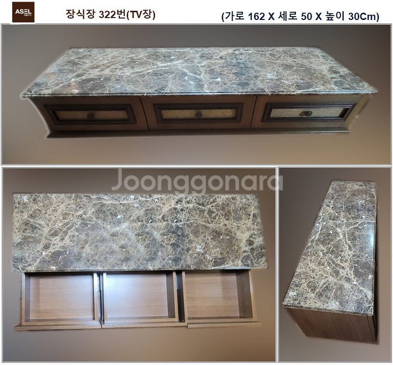 깔끔한 브라운 우드 프레임과 대리석 상판의 TV장이에요. 수납공간도 넉넉하고 상태 양호합니다. 거실 인테리어 포인트로 딱 좋을 것 같아요!010 3113 5035경기도 하남시 상일IC 근처에 있는 대형 창고형 매장입니다 호텔중고가구를 전문 판매하고 있으며 전국 착불배송 판매하고 있습니다. 엔틱가구, 빈티지가구, 콘솔, 쇼파, 테이블, 웨곤, 원탁, 러브테이블, 책상, 화장대, 베드벤치, 의자, 식탁, TV장, 수납장, 장식장, 스텐드, 거울, 조명, 분수, 옷걸이, 고가구, 장식대, 파티션, 커튼,액자, 소품, 사무용가구, 카페가구, 식당의자 등을 판매합니다. 업체명 : 아셀가구 ( http://asel.o-r.kr ) 거래방식 : 직거래, 온라인 용달착불 매장주소 : 하남시 풍초로 (방문시 예약필수) 가격은 하단에 있습니다 문의 02-488-1008, 010-3113-5035