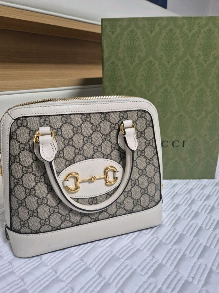 베이지와 화이트 컬러로 어떤 스타일에도 잘 어울리고, 골드 하드웨어가 고급스러운 느낌을 줍니다. 상태 양호한 정품으로 구찌 박스도 함께 드려요! 구찌 1955 홀스빗 탑핸들백 입니다! 사이즈 : 25 x 24 x 9cm 2021년 6월 대구 현대백화점에서 구매했구요 실착용 10회미만입니다. 박스,쇼핑백까지 풀구성으로 가지고있어 선물하시기에도 좋아요