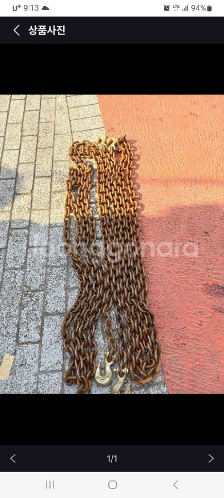 체인줄 굴기13밀리 체인길이 8메타 후크2개 10만원판매합니다