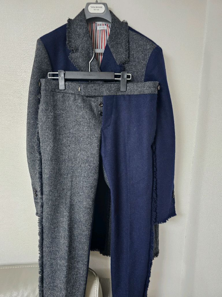 톰브라운 셰틀랜드 펀믹스 헤링본 코트 바지 셋업 판매합니다. 클래식한 실루엣에 톰 브라운 특유의 모던한 트위스트를 더한 제품으로, 전체적으로 올풀림 마감(frayed trimming) 처리가 되어 있는 독특한 디자인입니다. 코트는 하이암홀 핏으로 나와 라인 예술로 나오며 바지까지 세트입니다 . 소재 및 색상: 울 소재로, 네이비 블루와 그레이 헤링본 패턴이 혼합 사이즈:코트 3(100사이즈) 바지:1사이즈(30사이즈/수선가능) 구매처:백화점 구매. 구매년도:20년 가을쯤 구매가:세트로 560 정도로 기억 구성:코트 바지 옷걸이/톰브라운 타이 선물드림 상태:코트 바지 모두 상태좋으며 하자없습니다. 네고 요청은 상식선에서 해주세요