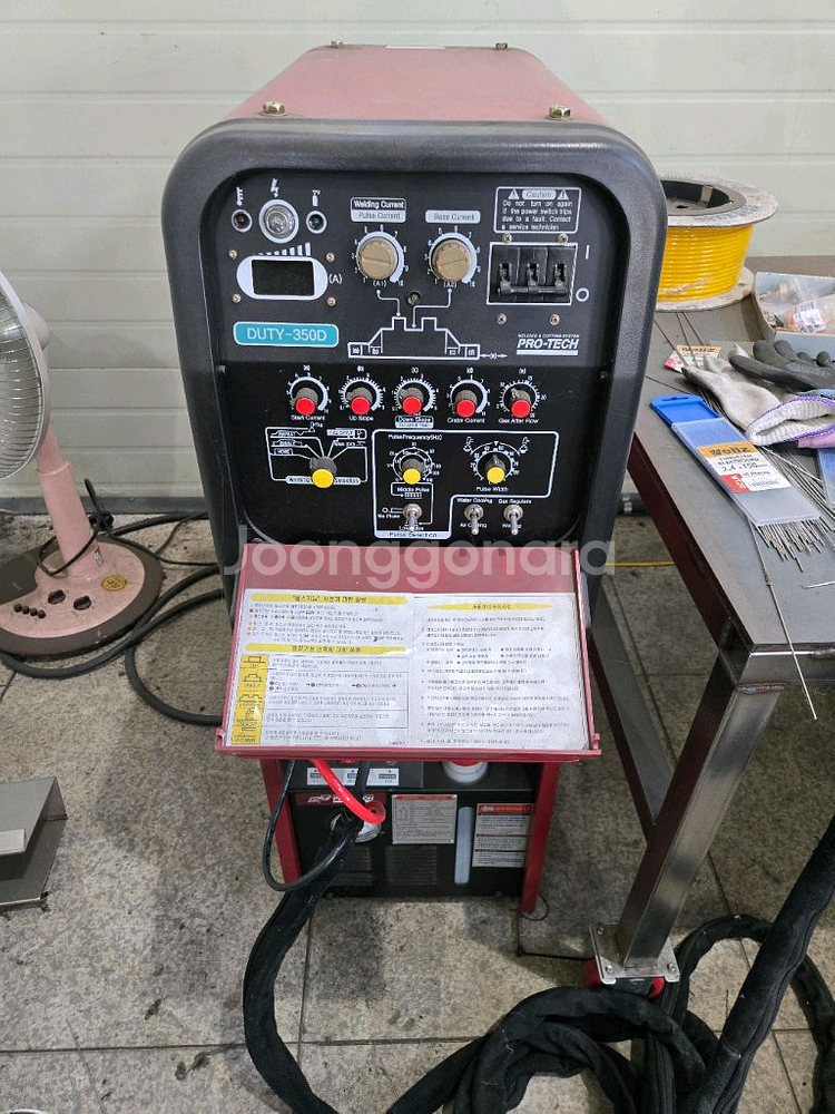 ★ 제품의 특징★ 1. 실시간 용접 전류치를 한눈에 볼 수 있는 디지털 디스플레이 기능 2. 5가지 이상의 다양한 멀티기능을 갖춘 첨단회로 내장 3. 업그레이드 된 시스템, 합리적 설계, 신뢰성 높은 고품질 부품사용 4. 질과 양에 구애 받지 않는 높은 사용율과 내구성 보장 5. ① 충격과 내열에 강한 ABS 재질을 사용하여 산화 부식을 방지. ② 심플하고 세련된 디자인을 구사하며 ③ 운반이 용이한 전후 핸들과 바퀴가 있음. 6. 50m 이상 장토오치 사용시도 순발 아크발생 모델(MODEL) DUTY-350D 21년에 구매하였고 거의 사용하지 않았습니다 워터펌프까지 드립니다