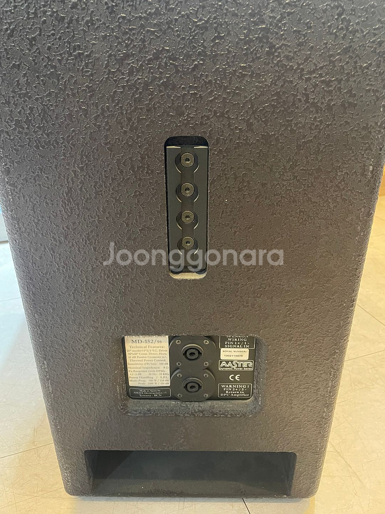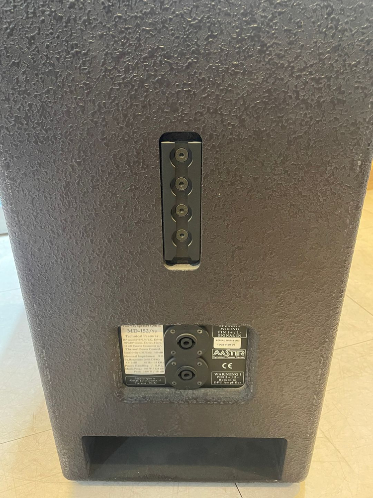 마스터 15인치 패시브 스피커입니다. 연식은 좀 있으나 깨끗한 음질을 유지하고 있습니다. 엠프 역시 최상의 컨디션입니다. 마스터 엠프중에 가장 용량이 큰 엠프입니다. 그리고 천장에 매달수 있는 부자재는 그냥 드리겠습니다. 무게와 크기가 있기에 택배는 불가합니다. 직접 오셔서 가져가야 합니다. 스피커1조(2통) - 100만원 엠프 - 100만원 연락처 - 010-3022-1691 입니다. 문자로 연락바랍니다.