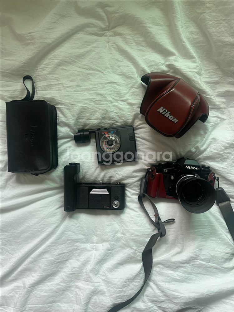 니콘 F3 필름카메라 50.4렌즈 니콘 가죽 케이스 모터 드라이브 플래쉬 스트로보 & 스트로보 케이스 건전지도 다 새로 꼈구요 일괄 판매합니다 정상 작동하구요 작례도 첨부합니다 서울권역 내에서 직거래 합니다 연락 주세요