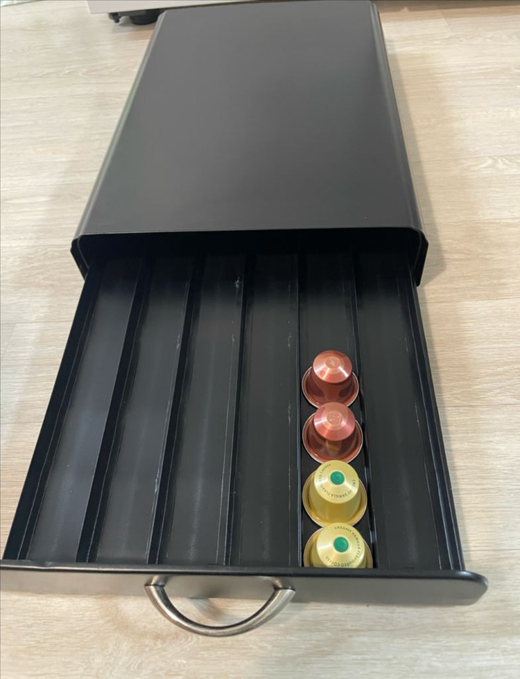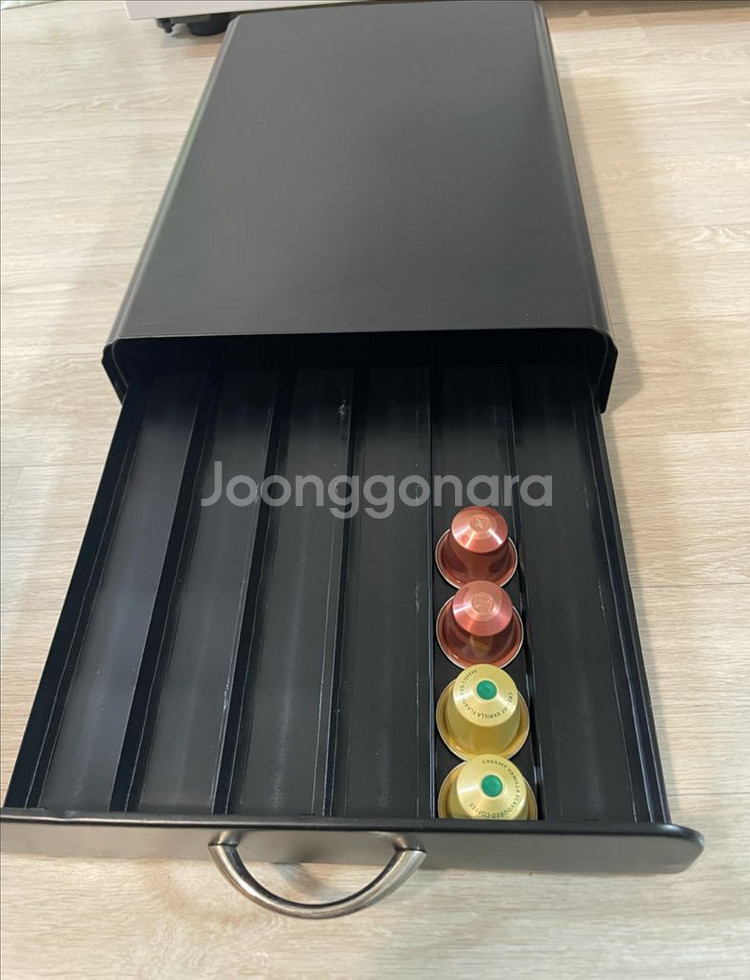 네스프레소 캡슐 정리함 (철제) 철제소재 스크래치 사용감 있지만 깨끗해요 첫번째사진은 엄청 스크래치 사용감으로 나왔는데 그정도 아니고 소재 특성상 빛으로 사진이 찍힌듯 ( 깨끗합니다 ) 9천원 착불