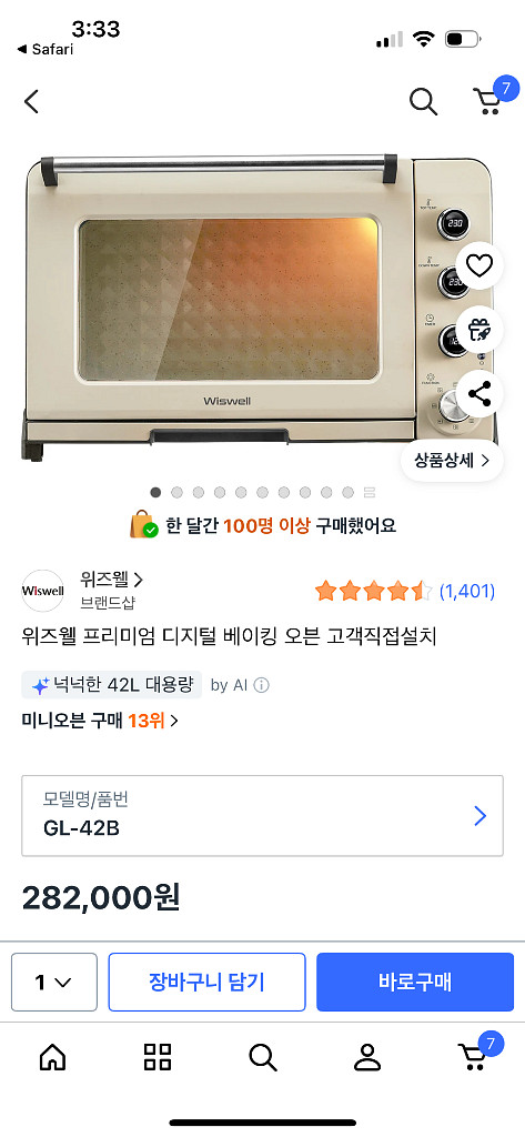 적당한 사이즈로 공간차지 안하고 베이지색이라 예쁜 오븐입니다! 사용감 좀있어요 작동 잘되고 사용한지 1년도 안돼서 상태 좋고 깨끗이 닦아서 사용하시면 될것같아여 검은색 망 두개도 같이 드릴게용 수유역 인근에서 직거래 가능하고 평일에는 오후 4시전 구리,문정역,노원역 가능하고 저녁시간대 의정부 신시가지에서도 직거래가능합니다 택배원하실경우 파손면책동의 착불로 배송입니다!