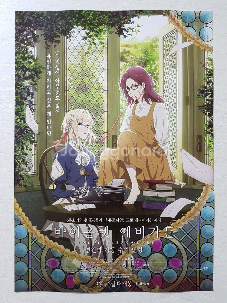 ※문의하시면 구매의사는 꼭 밝혀주시길 부탁드리겠습니다:) ※맨 마지막 사진과 프로필 공지사항 꼭! 읽어주세요. 적힌 가격은 전부 운미포 가격입니다. ㅡㅡㅡㅡㅡㅡㅡㅡㅡㅡㅡㅡㅡㅡ 극장판 바이올렛 에버가든 외전 영원과 자동수기인형 팜플렛 포스터 = 5,100원 미사용품입니다. 상태는 양호하지만 모서리 마모나 미세한 우글거림 조금씩 있습니다. 하자에 민감하신 분은 거래를 피해주세요!