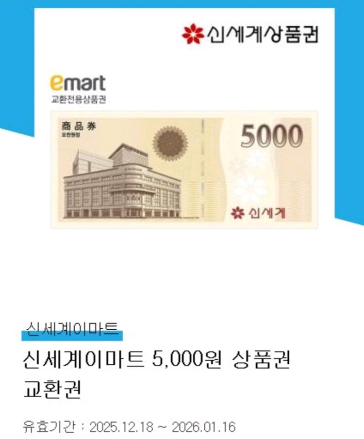 신세계 이마트 오천원 5천원 상품권 교환권입니다 사용기간 1년까지