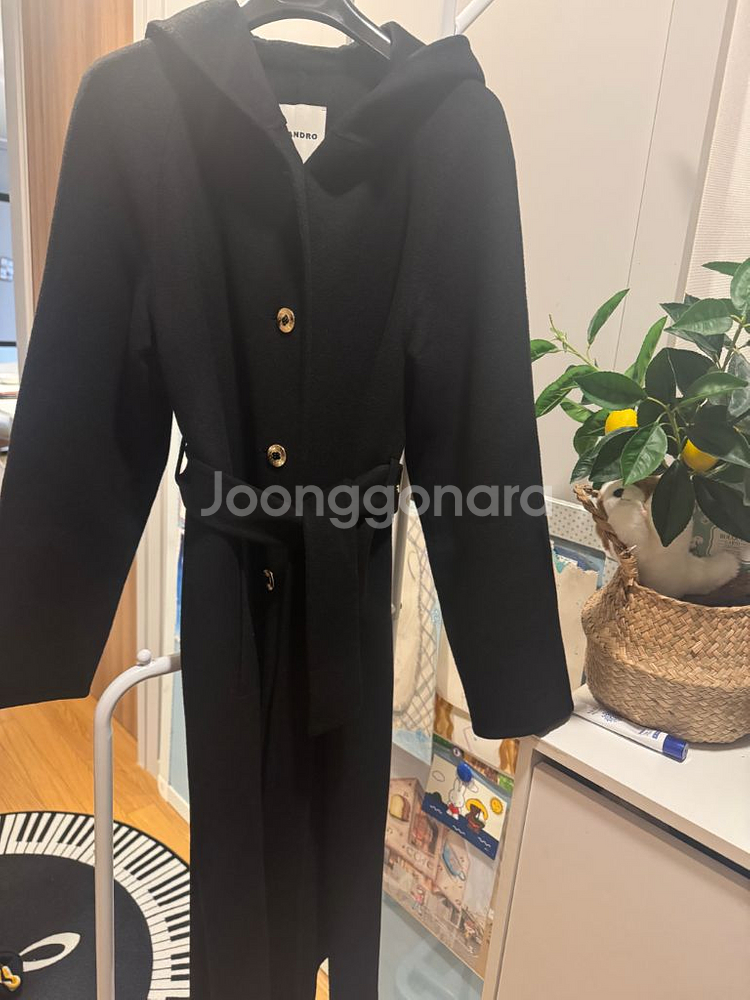 산드로 후드코트 블랙컬러 1사이즈입니다. 허리끈 있고,단추가 금장에 로고 포인트되고 이뻐요. 여기저기 코디하기 좋아요. 압구정 갤러리아백화점 구입상품이고 상태 깨끗해요. 택배3000원 추가됩니다.
