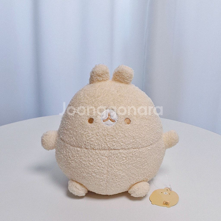 아이돌 공식 굿즈 캐릭터 인형이에요! 부드러운 베이지색 몸체와 귀여운 포인트가 매력적인 대형 사이즈입니다. 상태 양호하고 팬이라면 꼭 소장하고 싶은 아이템이에요.