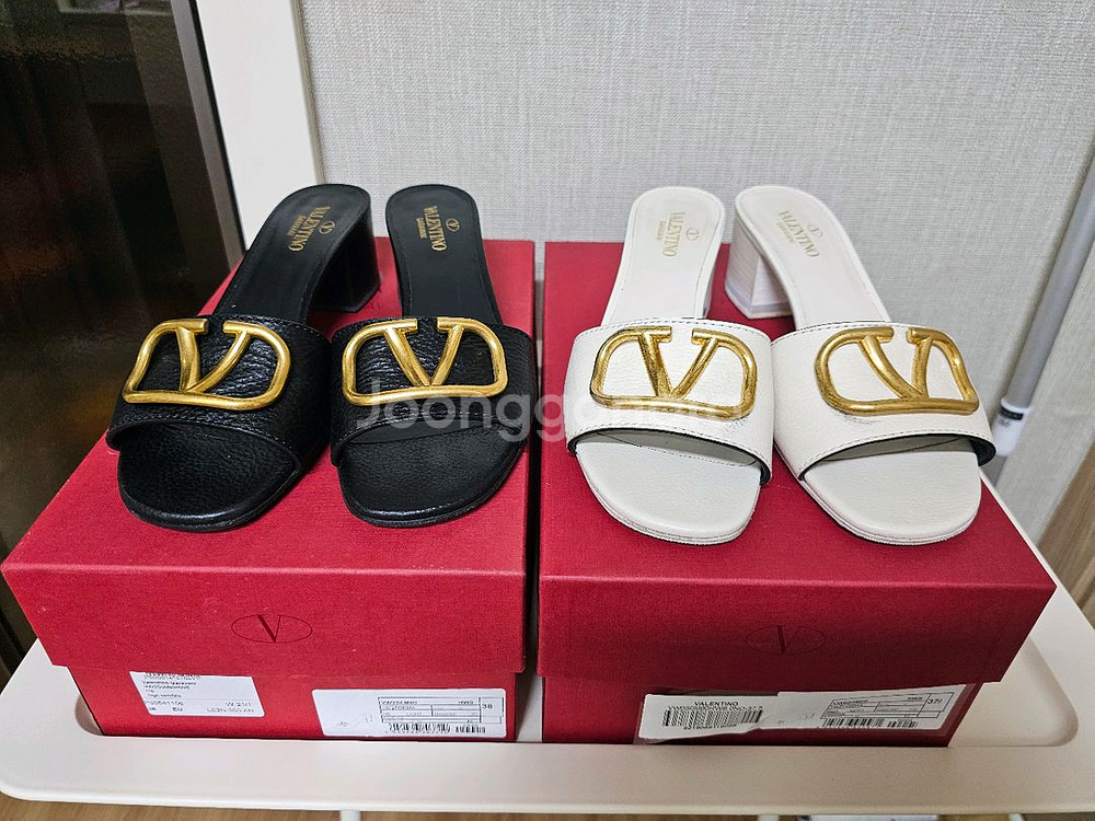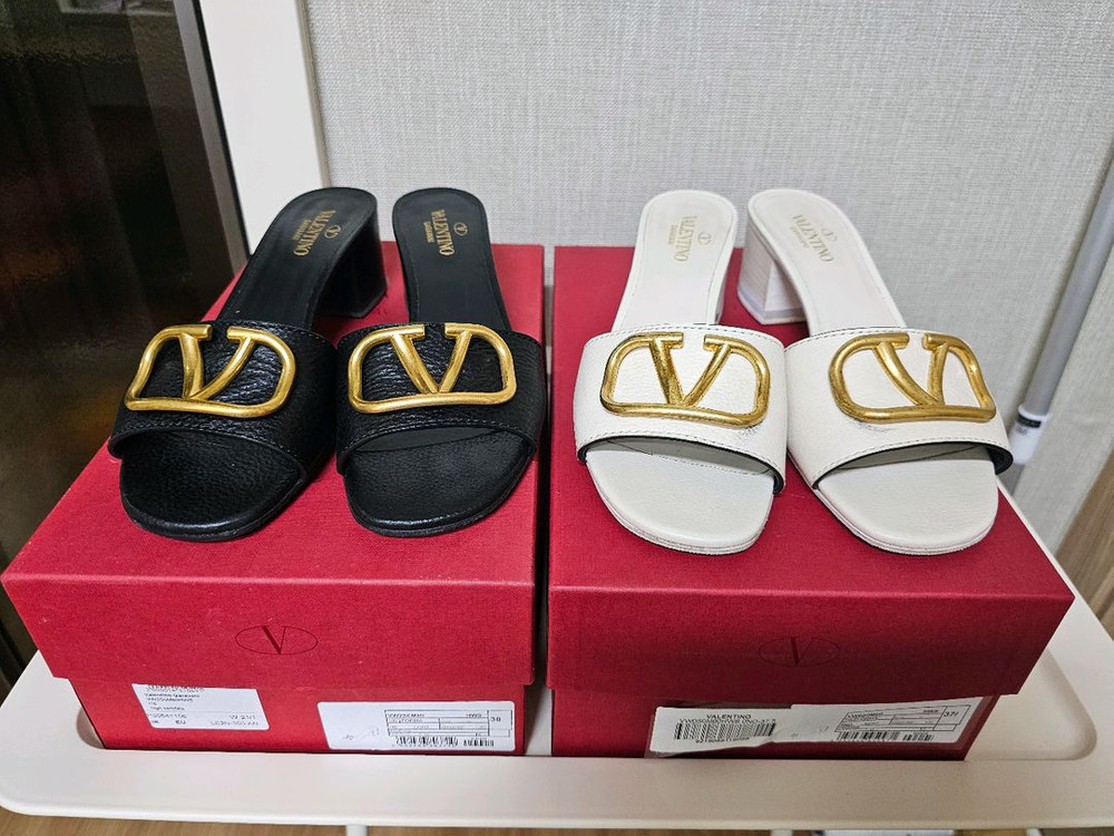 정품 발렌티노 v로고 시그니처 슬리퍼 블랙37(240~245) 2회미만 아이보리38(245~250) 4회미만 전체적으로 깔끔한 편이에요 돈주고 밑창 보강까지 해서 신었어요 켤레당 90만원 넘게주고 구매했어요 지방이라 직거래 어렵습니다 블랙 운포 40 아이보리 운포 30
