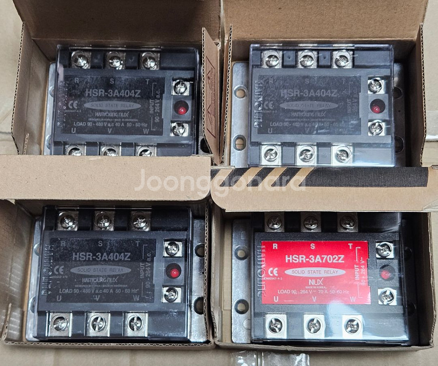 한영넉스 SSR 솔리드 스테이트 릴레이 4개 HSR-3A404Z 3개(1개당 4만원) HSR-3A702Z 1개(5만원) 입력 90V ~264V 출력 90V ~480V AC 무접점릴레이 미사용 새제품 일괄판매