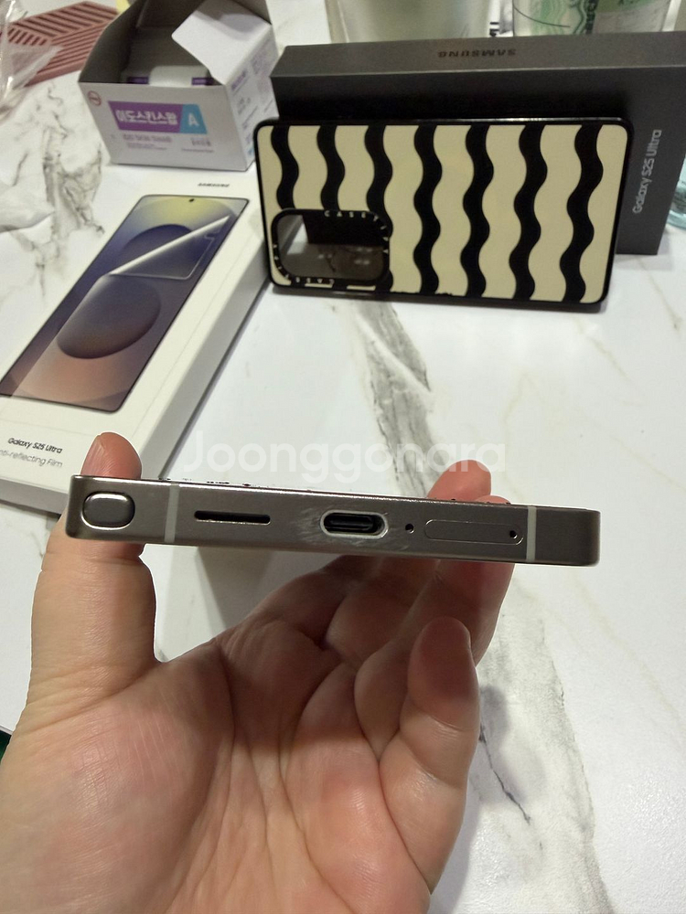 갤럭시 S25 울트라 256 티타늄그레이 판매합니다. 박스, 케이블 포함, 사용하던 케이스티파이 케이스도 함께 드립니다. 액정 필름 부착되어 있으나 사용감있고, 떼어내면 액정 기스 이런거 1도 없습니다. 그 자리에서 확인차 액정필름 떼어내도 됩니다. 액정필름 구입하고 남은 새거 한장 같이 드립니다. 최초 통화일은 2025년 2월 14일 입니다(Skt 구입) 10개월 사용했고 관리하며 사용한거라 사용감 안느껴질거예요. 아이폰으로 기변하여 정상해지 완료된 기기입니다. 충전기 연결부분 생활기스 있는데 그 외에는 항상 케이스 착용하고 떨어뜨린적도 없습니다. 갤럭시 구입시 사은품으로 받은 3 in 1 충전기도(뜯어보기만함) 같이 드려요. 실사용은 안했습니다. 갤워치 전용입니다. 찔러보기 싫고 쿨거시 네고 가능합니다. 가격제안 받아요. 오늘 내로 거래 완료 하고 싶습니다. (경기 성남 분당 판교 광주쪽 거래 가능합니다. 퇴근이후 늦은시간에도 가능합니다) 택배거래는 하지 않습니다. 제가 불안해서 싫어요.