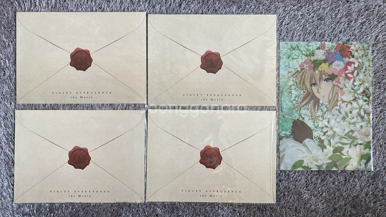 ※문의하시면 구매의사는 꼭 밝혀주시길 부탁드리겠습니다:) ※맨 마지막 사진과 프로필 공지사항 꼭! 읽어주세요. 적힌 가격은 전부 운미포 가격입니다. ㅡㅡㅡㅡㅡㅡㅡㅡㅡㅡㅡㅡㅡㅡ 극장판 바이올렛 에버가든 2주차 특전 클리어파일 전4종 + 5주차 특전 클리어파일 1종 = 세트로만 판매 / 70,700원 2주차 특전: 종류 확인을 위해 개봉했습니다. 오른쪽 사진에서 종류 확인하세요. 클리어파일 상태는 괜찮은데 비닐 상태가 좋진 못합니다. 5주차 특전: 비닐 미개봉품입니다. 상태는 양호한 편이지만 미세한 구겨짐 있을 수 있습니다.
