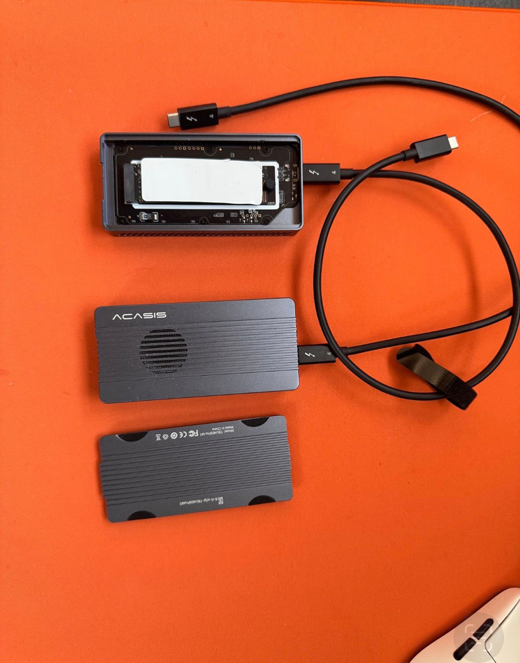 외장하드 ssd 2테라 제품 +인클로서 세트 팝니다. 제품은 사진과 같고 새거라고 보시면 됩니다. 2대 있으며 각각 35만원 입니다. 방열판으로 조립되어 있어 SSD 사진은 따로 없네요^^; 1.Platinum P41 NVMe SSD PCIe4.0 2TB 2. 아카시스 TBU405PRO M1 USB4 40Gbps NVME SSD 외장 케이스 인클로저 한대 남았습니다. 직거래는 판교입니다. 택배 가능 합니다.