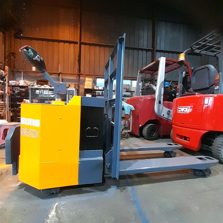 2.5톤 용량의 전동 파렛트트럭 입니다. 창고나 물류센터에서 사용하기 좋은 중고 장비예요. 상태 양호하고 정상 작동합니다. 전동 파렛트트럭 2.5톤 수성 SWP-2500 배터리 24V170AH 상급 충전기 포함 전동으로 상하 전후진 되며, 발판 펼치면 탑승이 가능한, 파렛트 운반용 입니다.