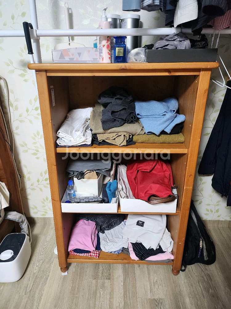 카사미아 3단 원목 책장입니다 사이즈는 775x465x1194입니다 옷 넣는용도로 깔끔하게 사용했습니다^^
