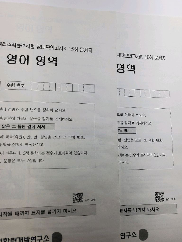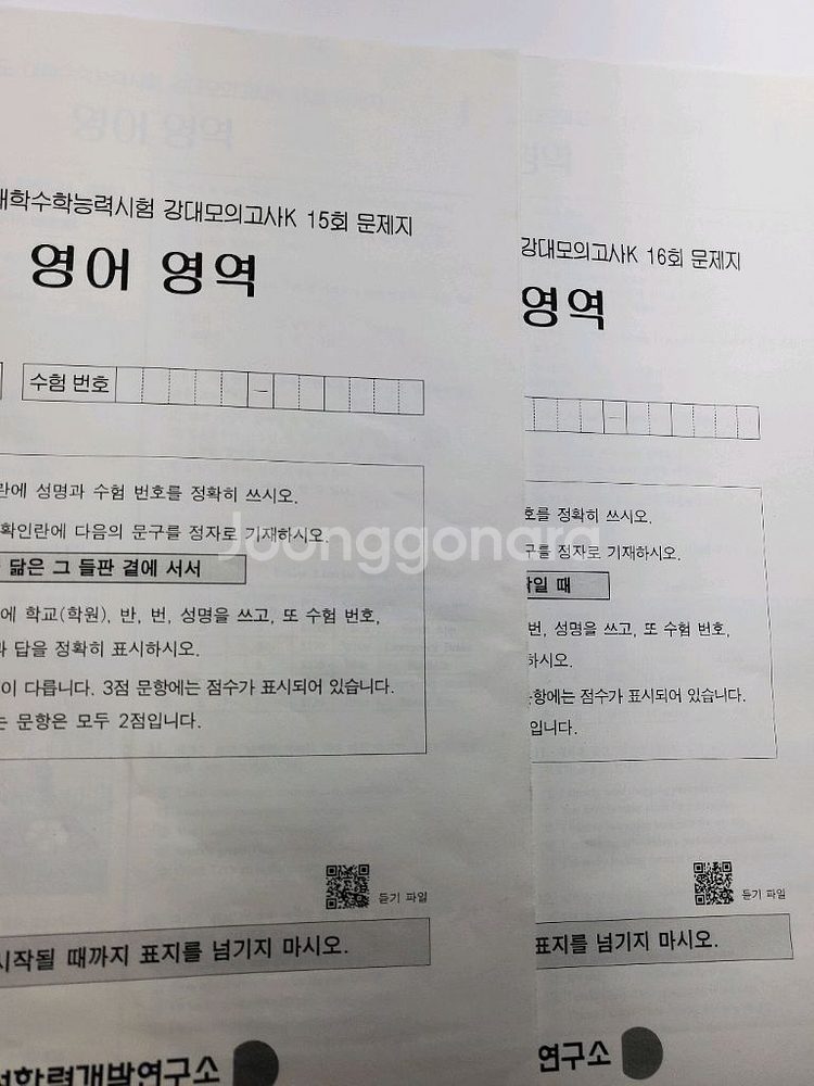 2026학년도 강대k(대성 강대모의고사 영어) 12회~16회 + 2026학년도 강대 half 독해모의고사 12회~16회 주의사항: 1. 받자마자 커팅해서 전체가 낱장으로 되어 있습니다.(사진 참조하세요) 이 점을 제외하고는 새것 같은 느낌이 들 것 입니다. 푸시는데는 전혀 지장 없습니다. 2. 반드시 전체 묶음으로만 판매합니다. 다시 한번 말씀드리지만 미개봉은 아닙니다. 모의 하나에 6천원 6천원 × 5개 = 3만원 입니다.(half 모의고사는 그냥 같이 드립니다) 택배비 3천원 따로 있습니다 결제부터 하지 마시고 재고 있는지 문의부터 해주세요!