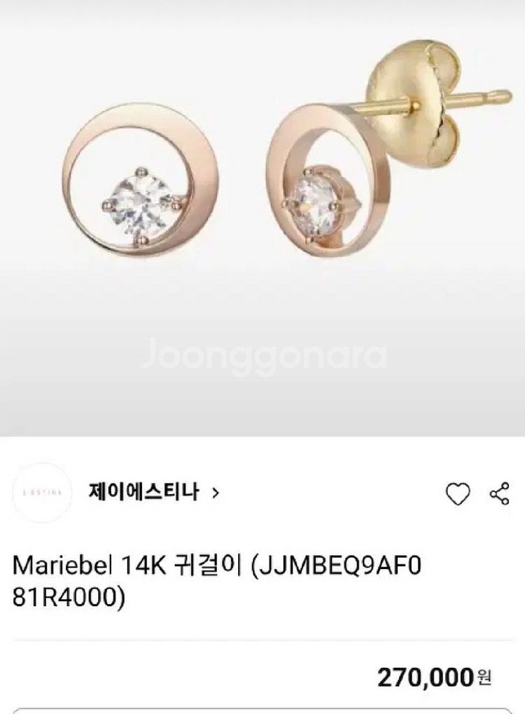 제이에스티나 14k 다이아 금 귀걸이 보증서없음. 귀뒷꼭지없음.실리콘마개드림.