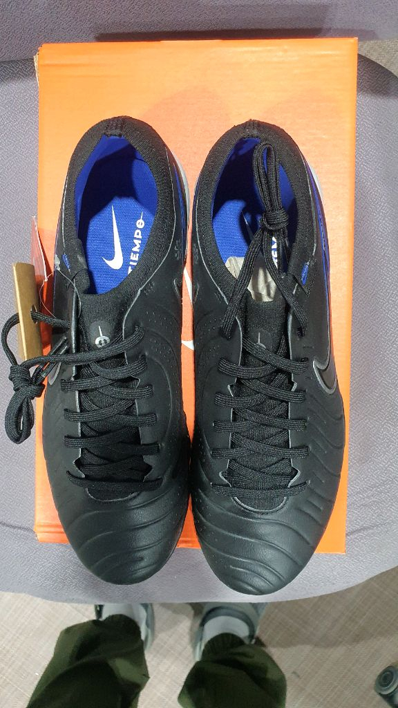 나이키 레전드 10 프로 풋살화입니다. 블랙 컬러에 블루 포인트가 들어간 디자인이 멋스러워요. 박스와 함께 판매하며 상태 양호합니다. 나코택 정품, 미사용 새제품 입니다. 경기도 고양시 파주시 직거래 가능합니다. 타지역은 착불 택배로 보내드리겠습니다.