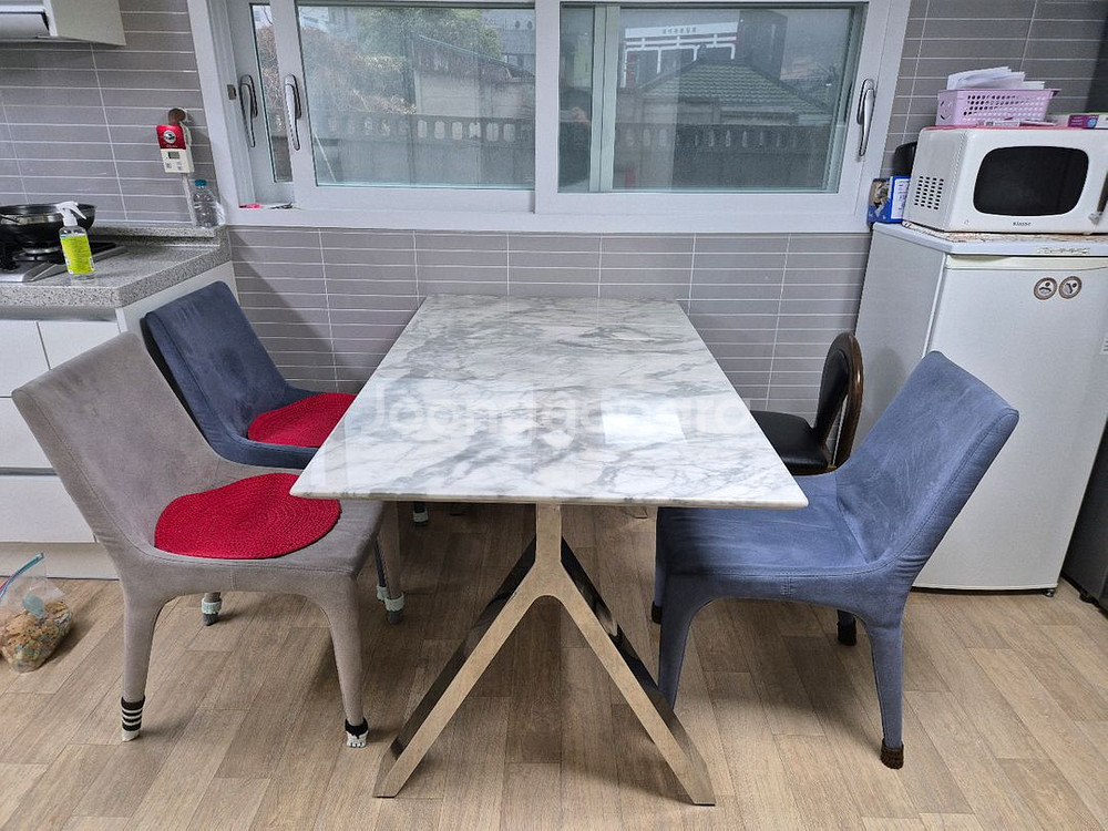 4인용 대리석 식탁+의자 세트로 판매합니다. 사이즈는 가로140 세로82 높이75 입니다. 필요하시면 마지막장 보조의자도 드립니다. 잘 사용하던 제품 이사때문에 싸게 판매합니다. 사이즈가 있어서 인천부평에서 직접 가져가셔야합니다.