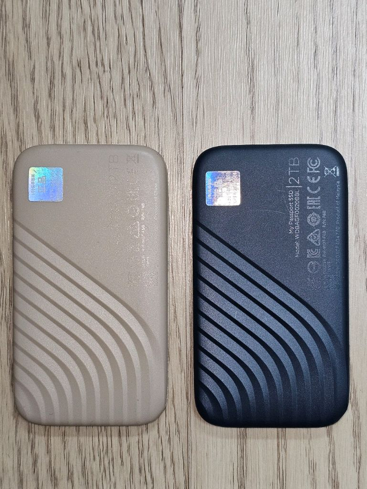 WD My Passport 외장 SSD 2TB입니다. 골드, 블루 색상 있습니다. 개당 190,000원에 판매하며 일괄구매시 네고 가능합니다.