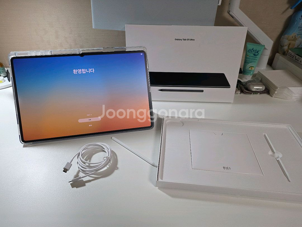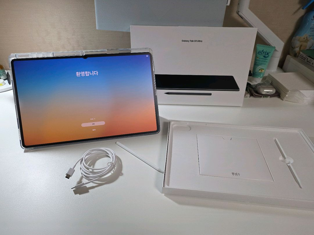 갤럭시탭S11 울트라 Wifi 512GB 그레이 모델입니다. 2025년 10월에 구매한 제품이며, 실사용 한달되었습니다. 제품 특징으로 무게가 탭S10 울트라에 비해 얇아지고 가벼워져서 충분히 휴대하실 수 있습니다. 인강 듣고 필기용으로 주로 사용하였으며, 액정에 종이질감 필름 부착하여 필기감은 좋습니다. S팬을 조금 사용하여 판촉 끝부분만 살짝 사용감 있으며, 나머지는 만질일이 없어서 외관상 기스나 크랙 일절 없습니다. 화면이 커서 영상시청중에 화면 분할로 필기도 동시에 가능합니다. 화면이 커서... 사실 영화나 드라마 보기에 너무 좋아 공부를 잘 안하게되어 판매하게 되었습니다. 직거래는 수원역이나 그 인근에서 가능하며, 택배거래 시 3천원 추가됩니다. 거래이력이 많으니 안심하시고 편안한 방법으로 거래방법 선택해서 알려주세요 :) 감사합니다. 채팅주세요~