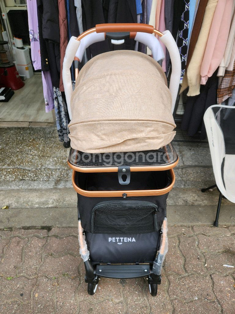 반려동물과 함께 산책하기 좋은 펫 유모차예요. 베이지와 브라운 컬러로 깔끔하고 실용적이며, 상태도 양호해 보입니다.접이식도. 가능합니다. 사용하지않은. 새제품입니다