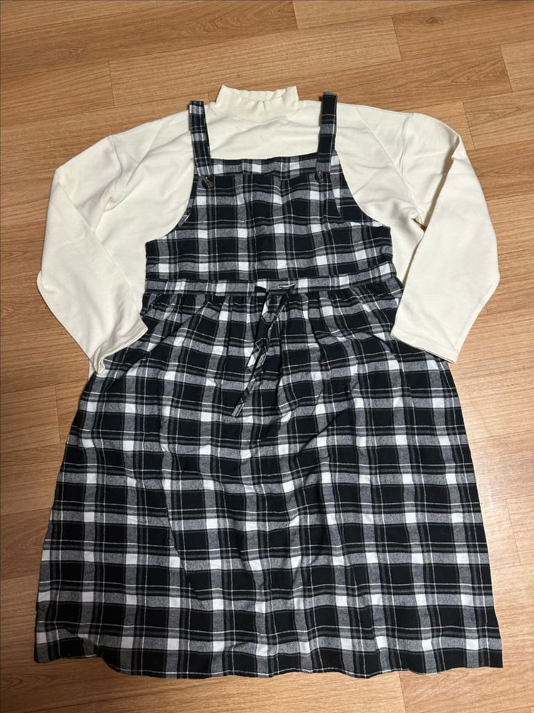 원피스 상의 같이 판매합니다 배송비는 별도이고 키 160에 무릎 아래 중간 정도로 옵니다 상의는 살짝 얼룩 있습니다