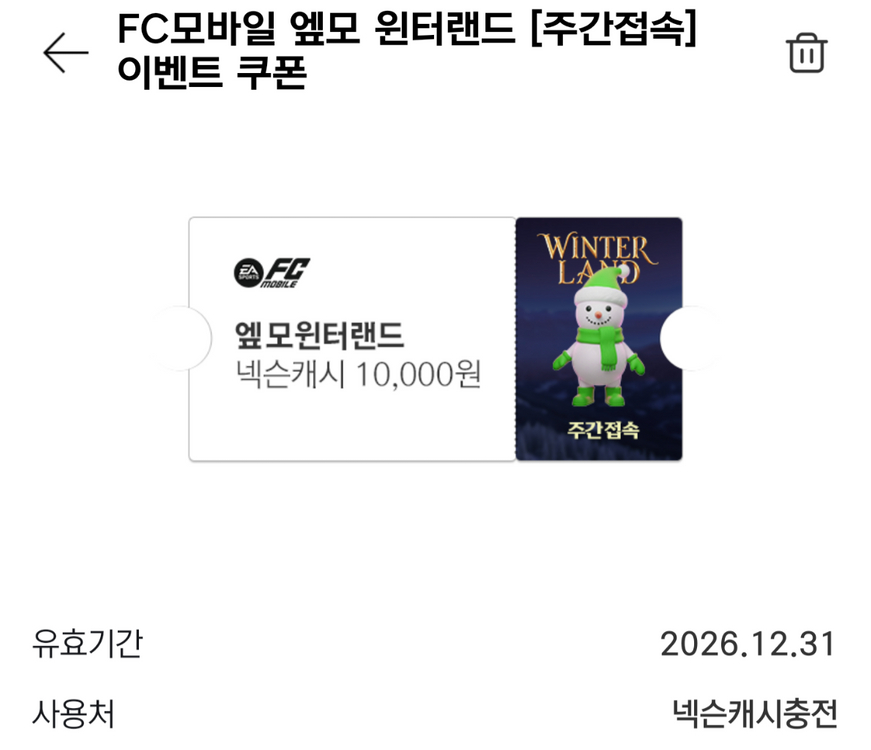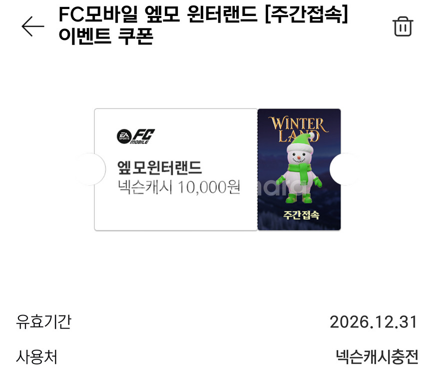 넥슨캐시 10000원 상품권쿠폰 1매