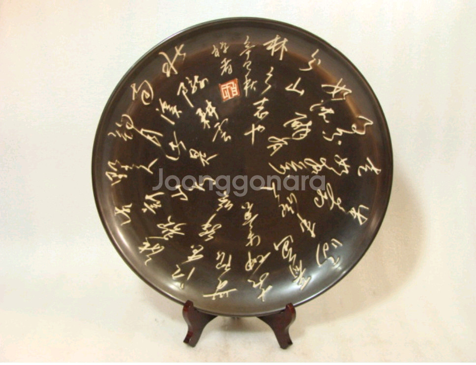 직접 글씨를 써서 구워낸 장식용 도자기입니다. 난이도 있는 작품으로 요즘은 만나기 힘든 귀한 작품입니다. 작품성이 매우 좋은 명필 서예가의 도자기 접시 작품~~~ 싸이즈가 아주 크며, 받침대도 함께 드립니다. 글씨부분은 음각으로 되어 있습니다. 상세 이미지 참고하세요 싸이즈는 대략 30*30입니다.