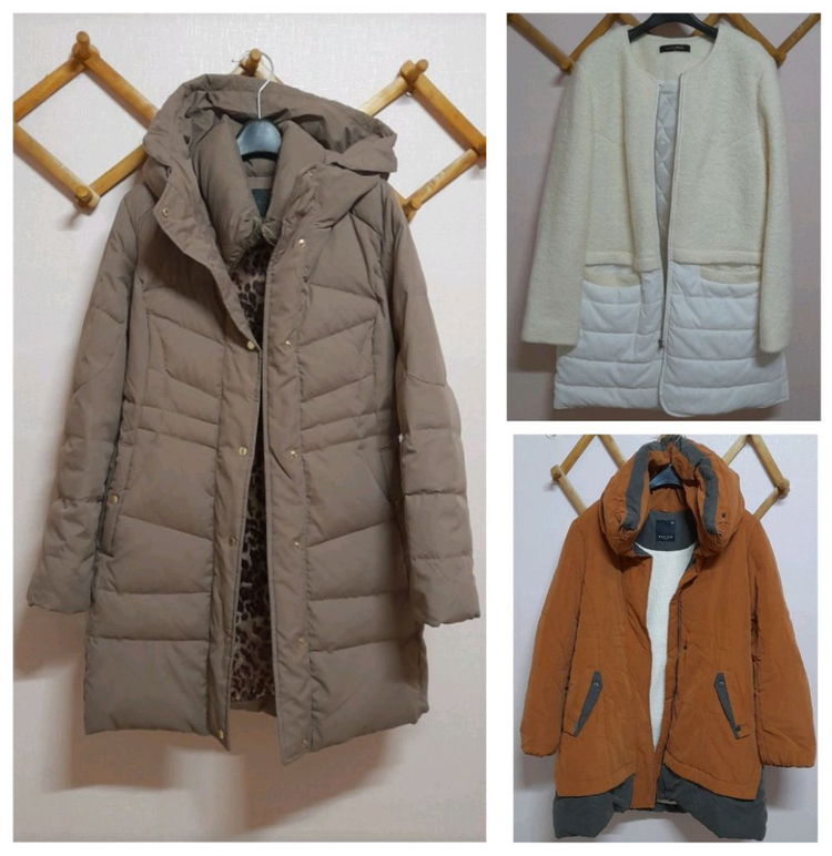 1. 조이너스 66 : 38.000 사진보다 좀 더 진함 시착만, 허리라인 잡아주며 가벼움. 겨울용 2. 연베이지 코트 88 : 20.000, 가슴단면 55cm 가을겨울용 보통 두께 3. 점퍼 88 : 20.000, 도톰 겨울용, 소매 밴딩, 사진보다 더 어두운 색. 원가 40.000 (다 새상품. 빠른판매를 위한 구매가보다 내림) * 배송비 별도 GS&CU 반값택배 2000 일반택배 동일권 3500 타권 4000