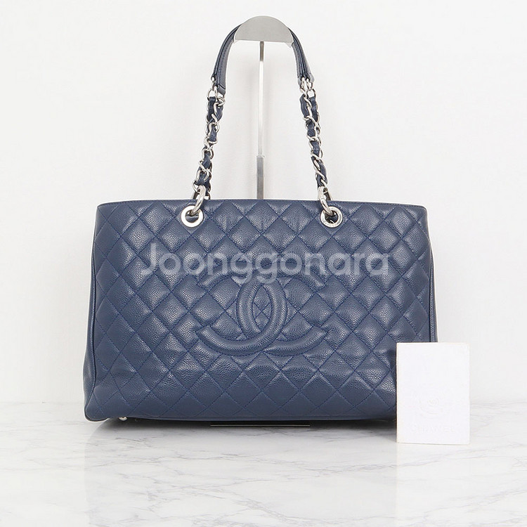 01420 샤넬 캐비어 그랜드 샤핑 체인 숄더백 A50995 컨디션: B+ 가방 생활 사용감, 내부 생활 오염, 모서리 가죽 까짐 있습니다. 상세사진 확인 부탁드립니다. 시리얼: A50995 사이즈: 34 x 24 x12.5cm 구성품: 본품, 북렛, 개런티 카드